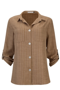 Camiseiro de riscas, com manga comprida e bolso. Casual.