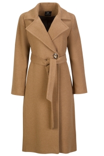 Casaco comprido, de trespasse, com botão e cinto. Linha clássica. 60% lã. Fabricado em Portugal.